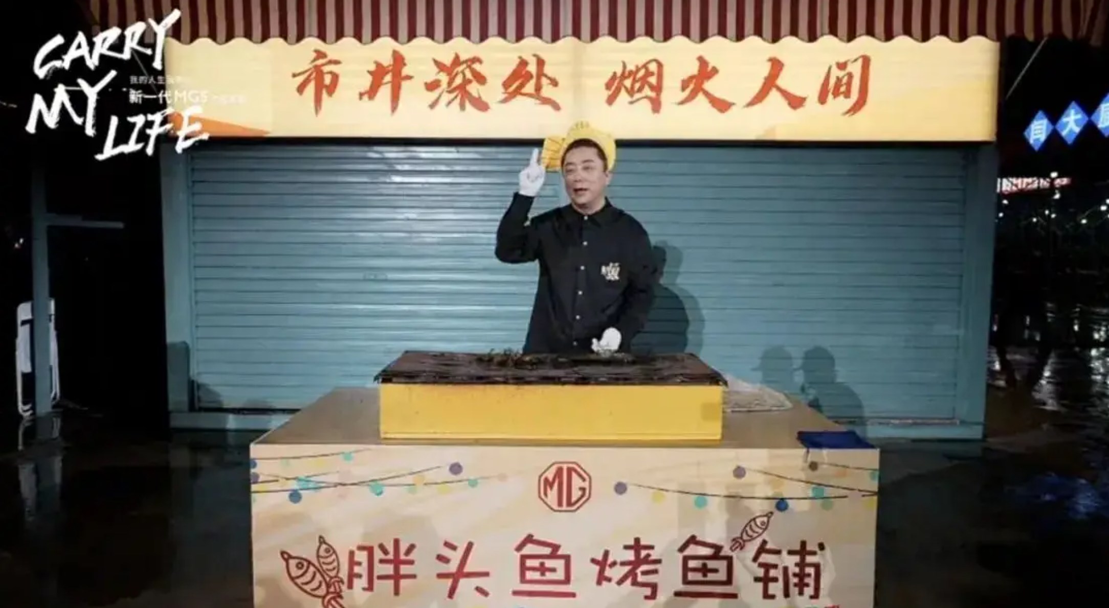 新一代MG5的发布会,在“烧烤之城”山东淄博举办。上汽乘用车常务副总经理俞经民化身烧烤大师傅,端出他的主菜“俞烤鱼”。因为经常被调侃叫做“车圈胖头鱼”,他还特意戴了一个鱼头帽子。炭火烧烤、啤酒、煎饼卷大葱,这些平日里出现在淄博街头巷尾的美食,也被搬到发布会台下。