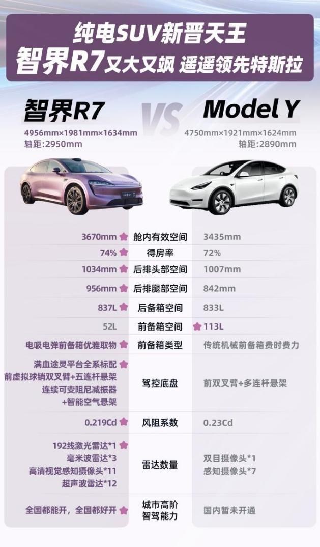 相信不少此前计划购买特斯拉Model Y的朋友,现在也开始纠结、对比智界R7了。我们今天就来为大家对比一下智界R7与特斯拉Model Y的产品实力,相信看完之后,大家心中就会有了答案。